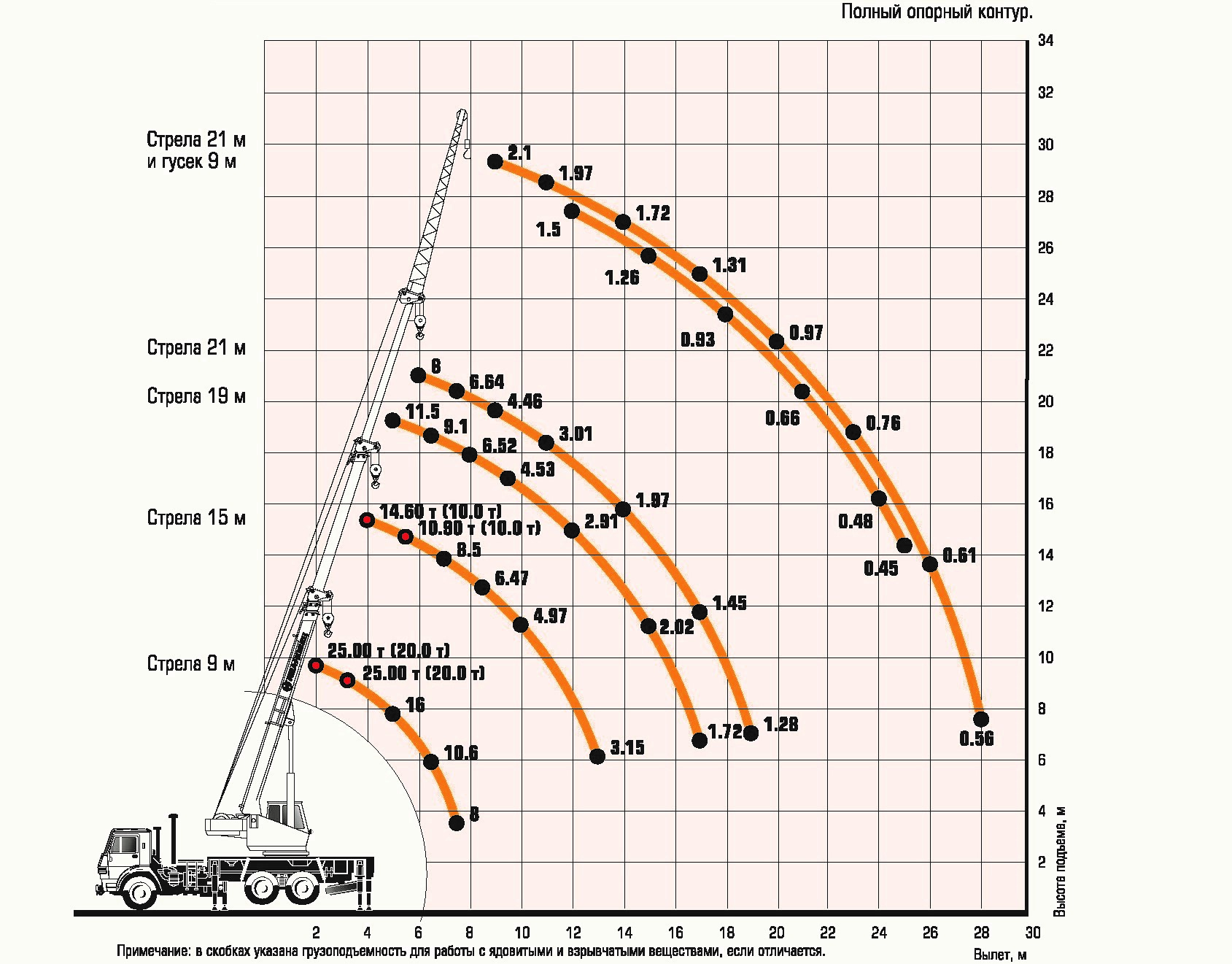 Значительные изменения внесены в серию кранов КС-25М. Эти изменения сделаны для обеспечения комфортной и эффективной работы при выполнении задач по интенсивной обработке грузов с высокими требованиями к грузоподъемности. Помимо комфортабельной кабины с новыми для этой серии органами управления (боковые рычаги или ЭПСУ), автокраны серии КС-25М получили увеличенный на 17% опорный контур 5,4х6,0 м, мощные аутригеры и стрелу из шведской стали Strenx 700 длиной 22 или 24 м. Все эти технические решения обеспечивают увеличенный до 85 тм максимальный грузовой момент и дополнительную грузоподъемность от 30 до 65% на средних и дальних вылетах, по сравнению с традиционной серией КС-25. Новая гидравлическая система с насосом объемом 112 «кубиков» и улучшенными показателями охлаждения за счет увеличения объема гидробака до 295 л. обеспечивает повышение скоростей выполнения крановых операций. Применённые технические решения в комплексе увеличивают общую эффективность выполнения цикличных работ на 25% по сравнению с серией КС-25В, а, значит, наши Заказчики получают высокоэффективный автокран для решения напряженных задач по обработке грузов в логистической отрасли и при выполнении монтажных работ.