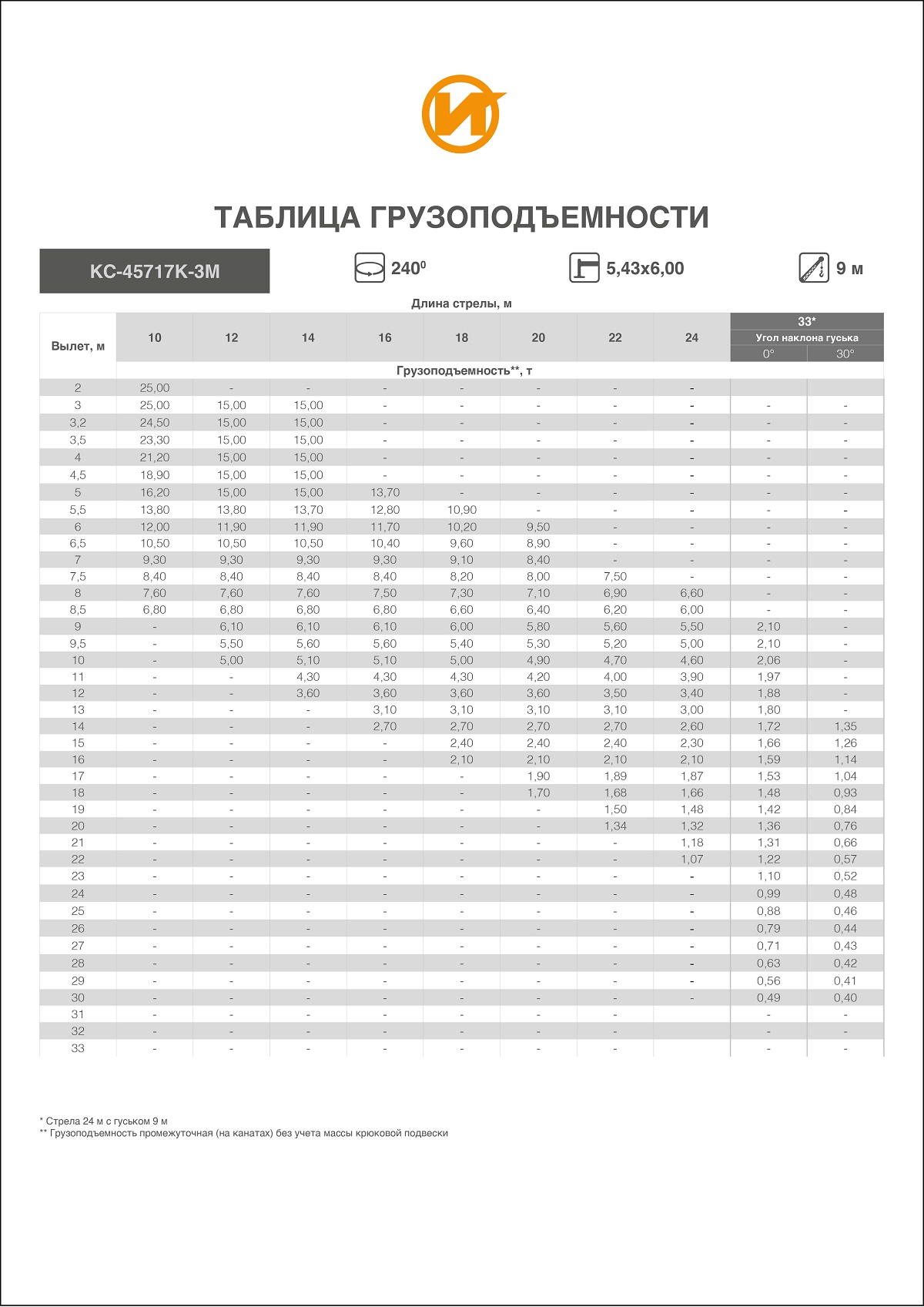 • Длина стрелы, м 10,0 - 24,0