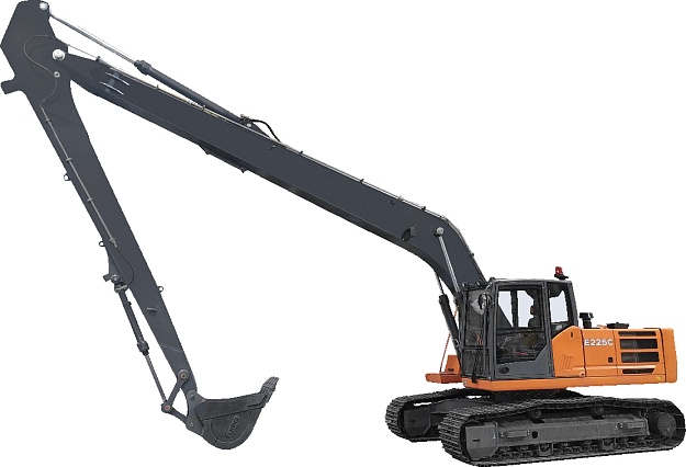 Полноповоротный одноковшовый гидравлический гусеничный экскаватор E225С LR со сверхдлинным рабочим оборудованием предназначен для: