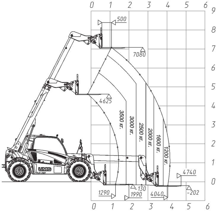 Телескопический погрузчик TLH 3507-CE оснащен стандартным оборудованием: