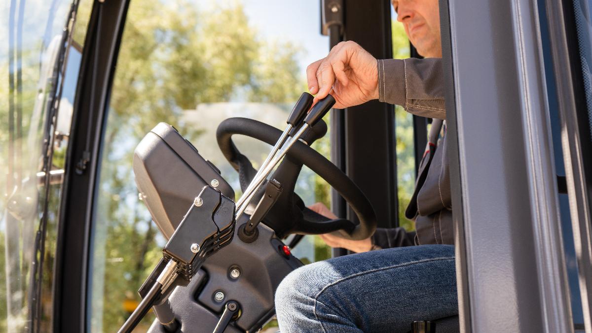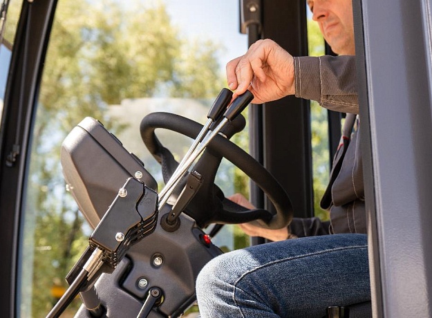 • Новые органы управления рабочим оборудованием - короткие рычаги с малым ходом, установленные на регулируемой рулевой колонке