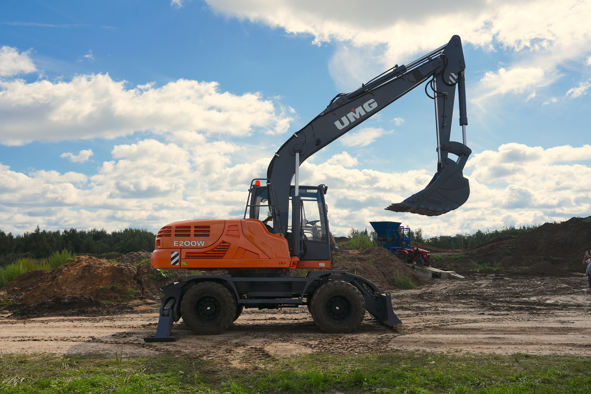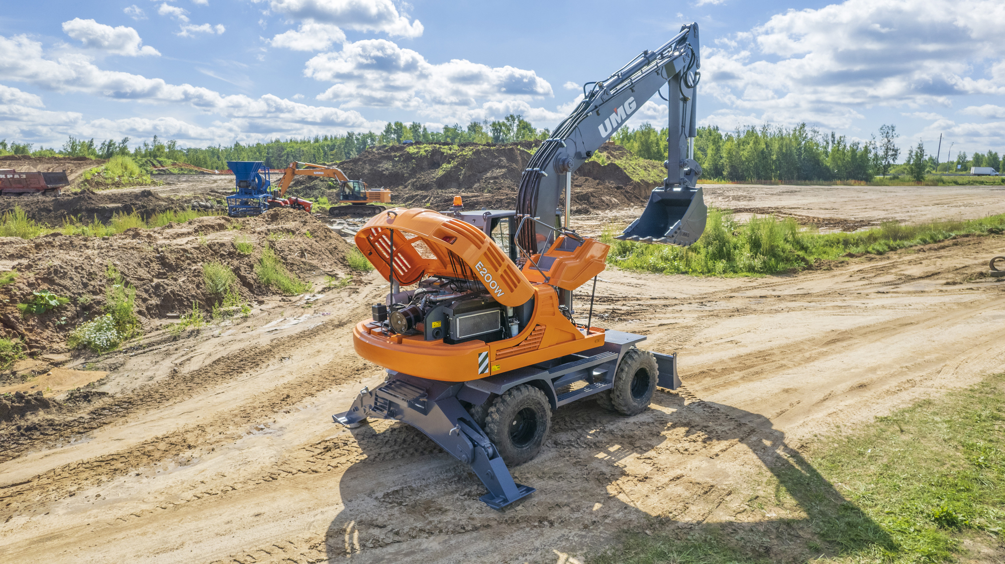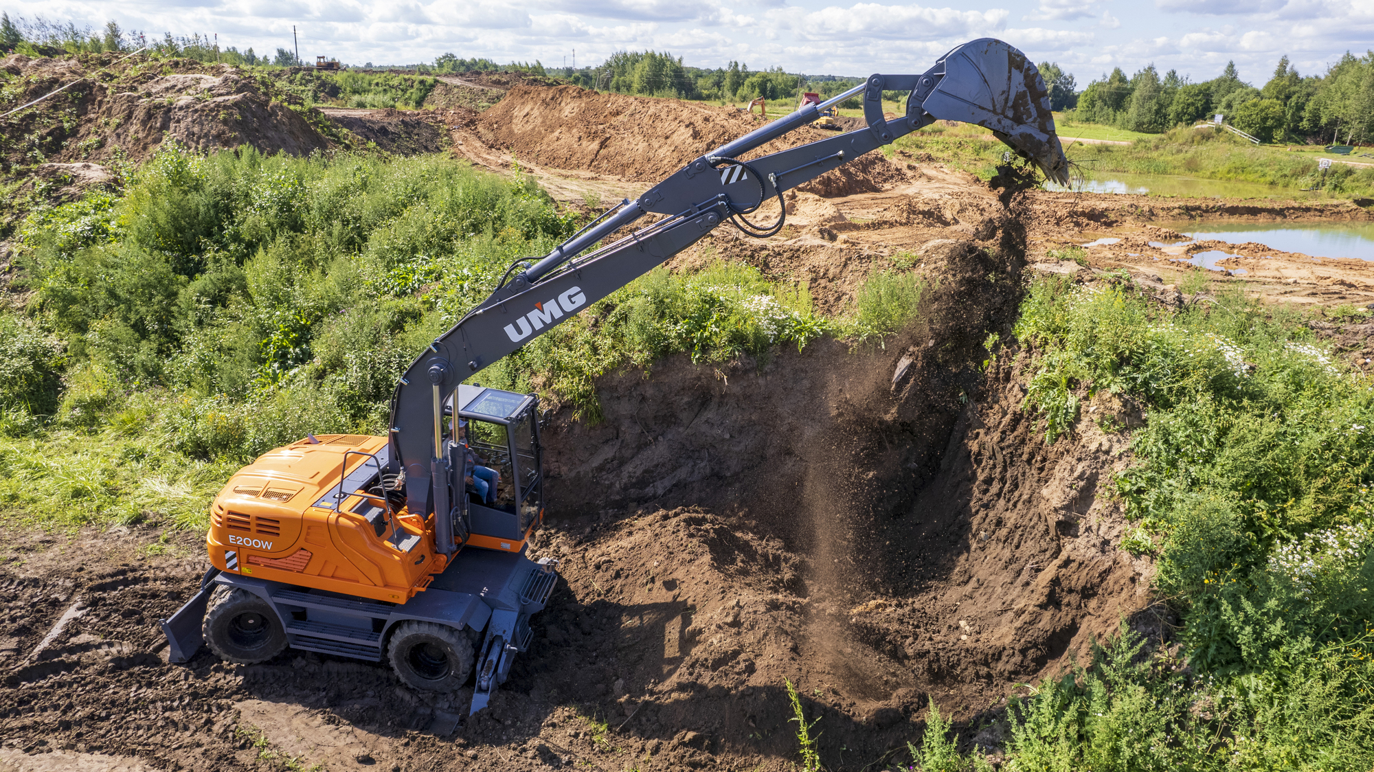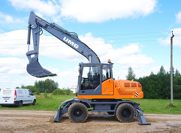 Полноповоротный, одноковшовый, универсальный, гидравлический колесный экскаватор Е200W предназначен для:
