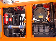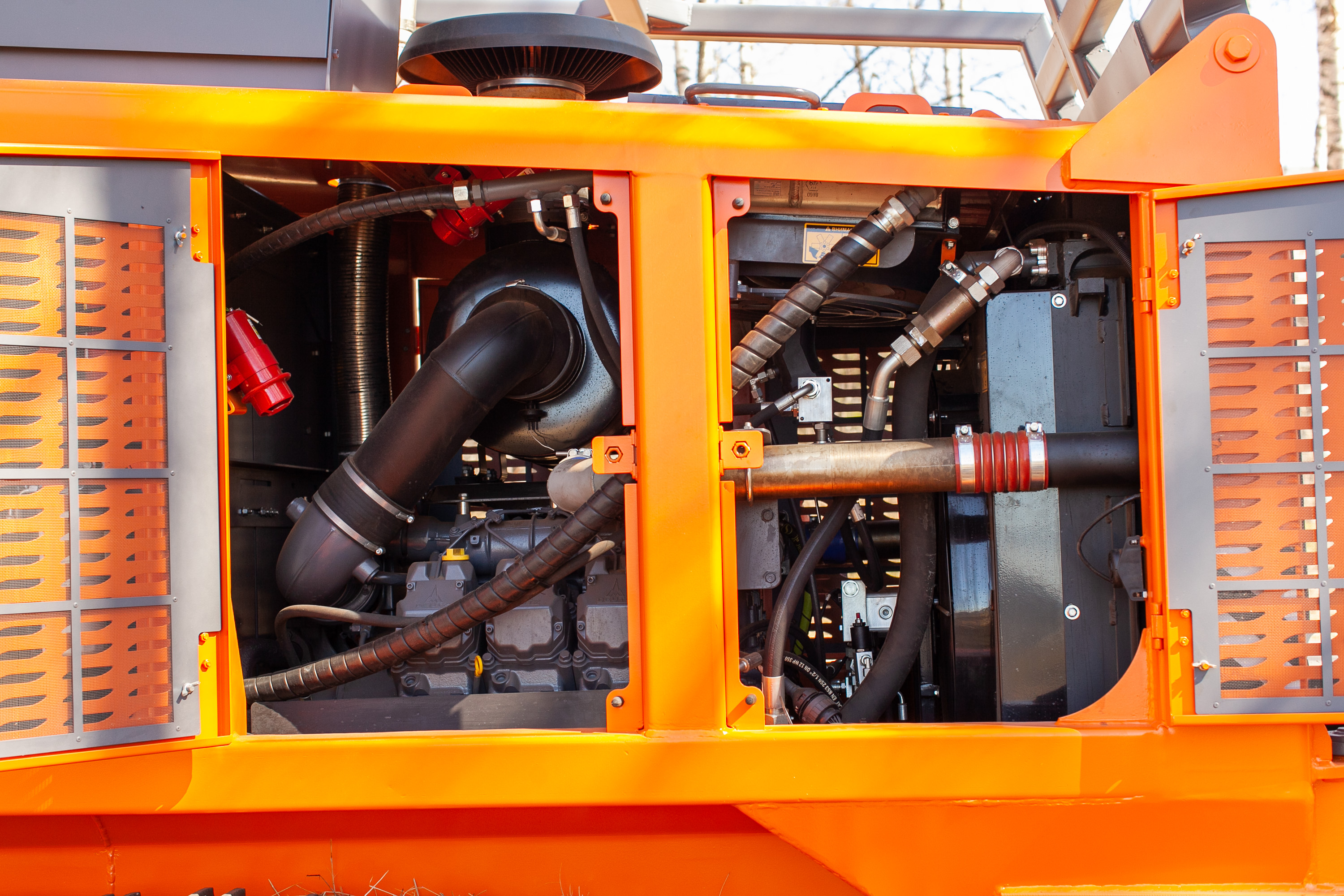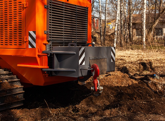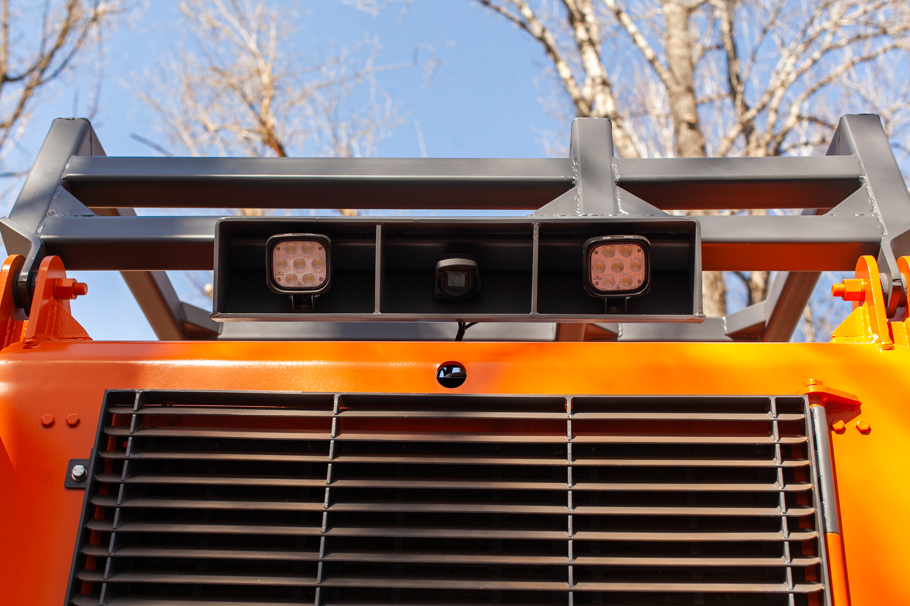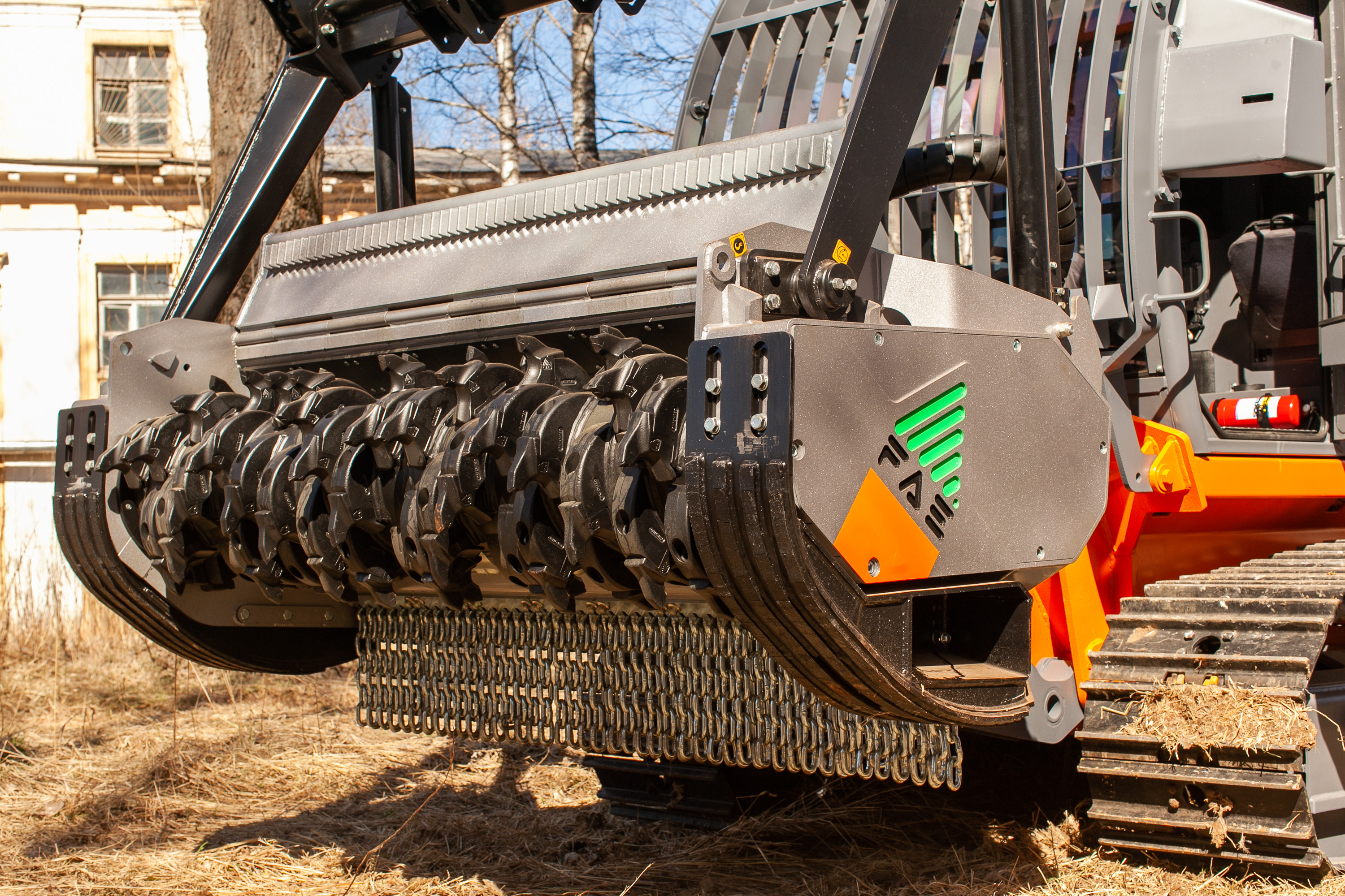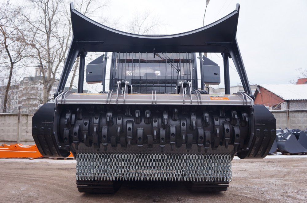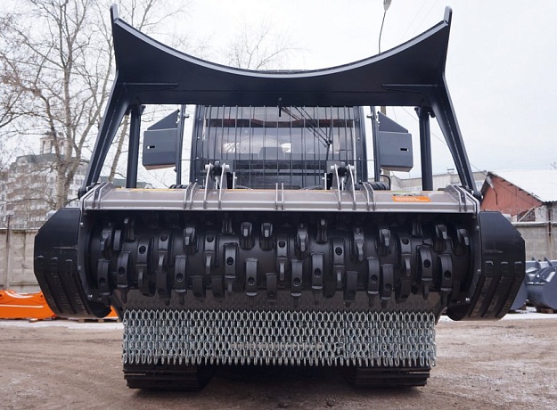 Оборудован высоконадежными гидромоторами хода и вращения ротора, электронной системой управления приводами от джойстиков, ЖК-монитором и камерой заднего вида. Кабиной c дополнительным откидным местом для пассажира, системой гусеничного хода с балансирной балкой; закрытой гидростатической трансмиссией хода, гидравлической системой привода ротора измельчителя, гидроприводом управления сервисными гидроцилиндрами (подъёма-опускания измельчителя, наклона толкающей рамы, открытия-закрытия крышки измельчителя, изменения угла наклона измельчителя, гидроприводом гидромотора маслоохладителя, приводом лебёдки), системой крепления рабочего оборудования, капотов, элементов защиты от падающих деревьев и комплектом светодиодных фар для эффективного освещения рабочей зоны.