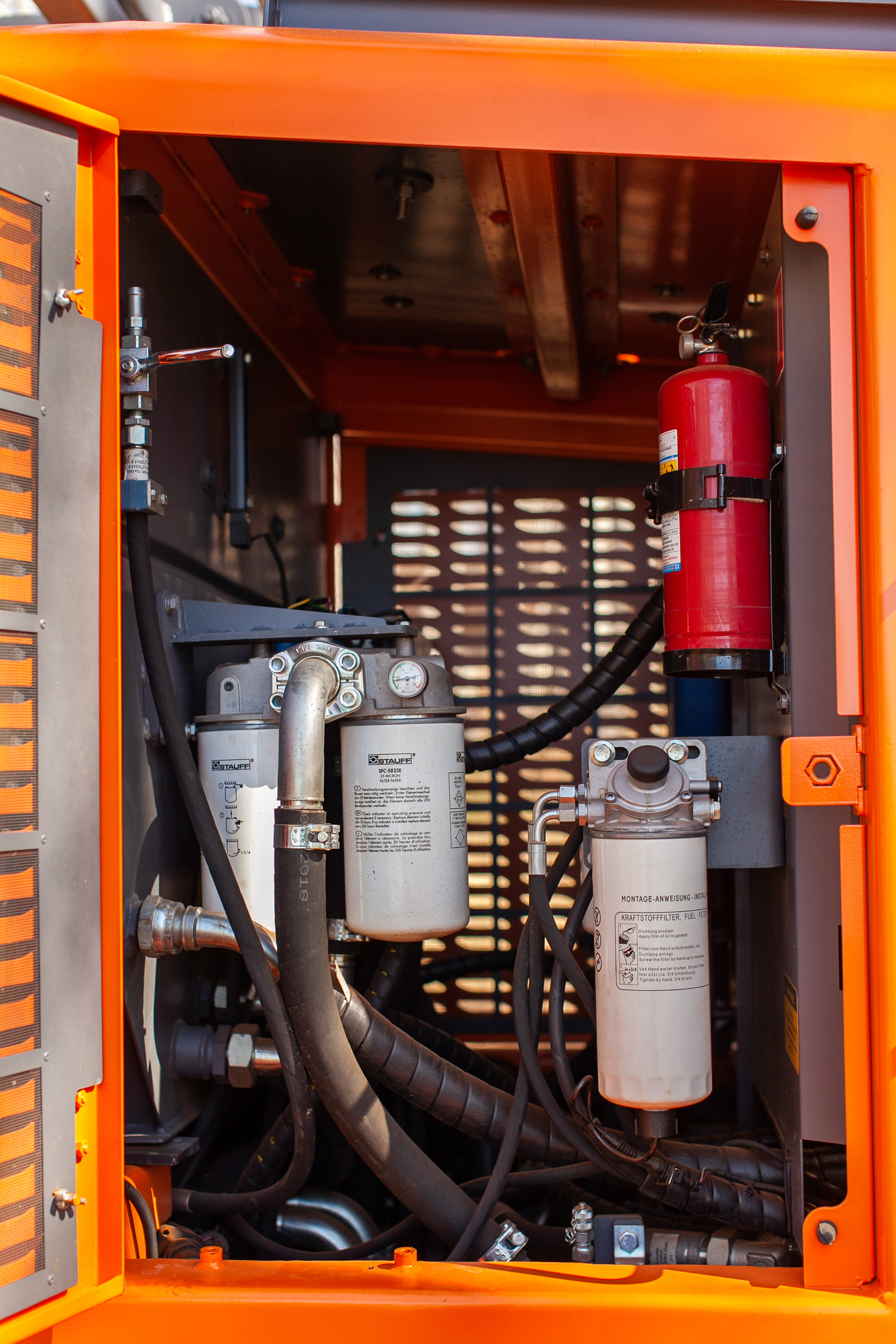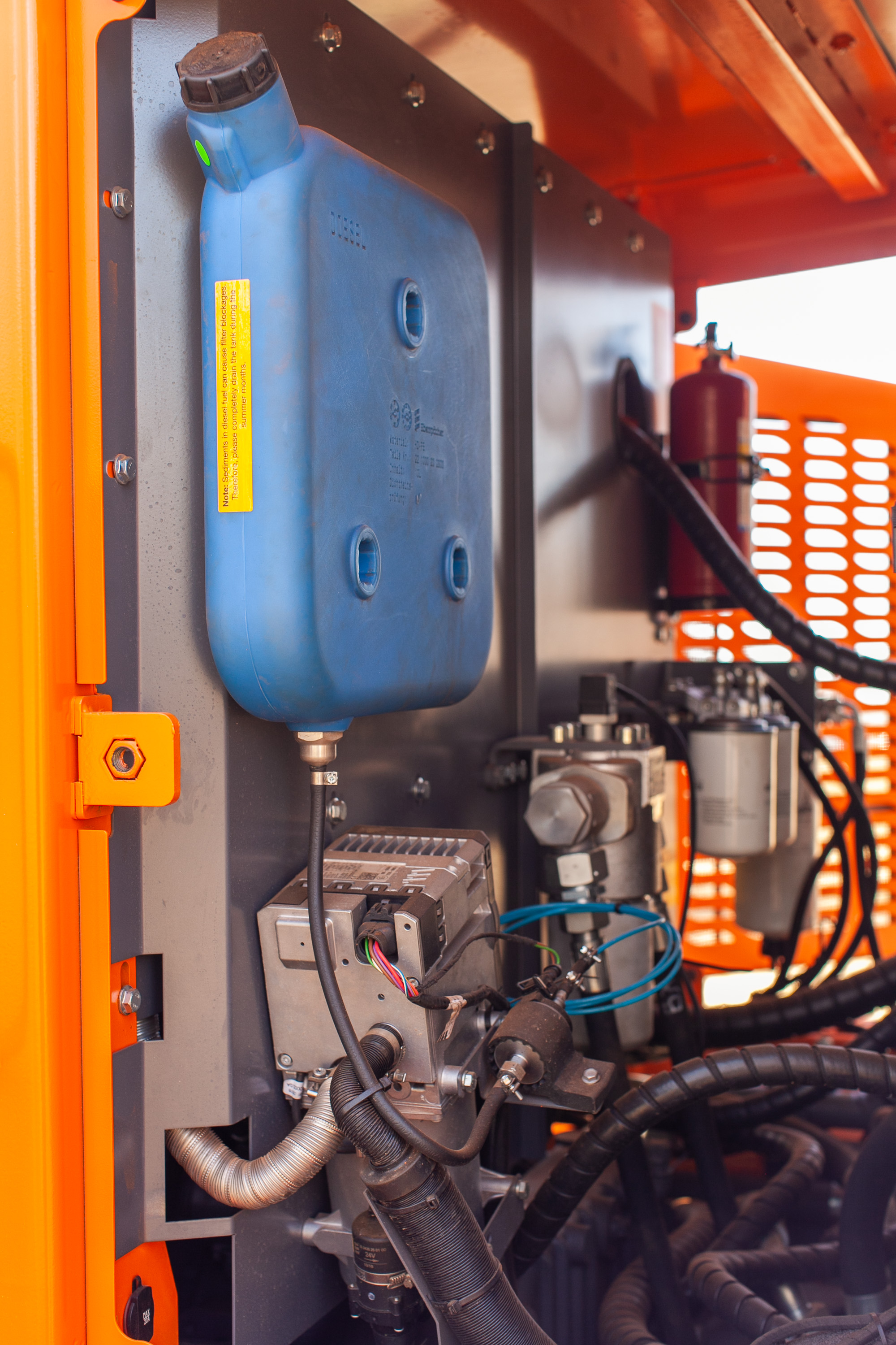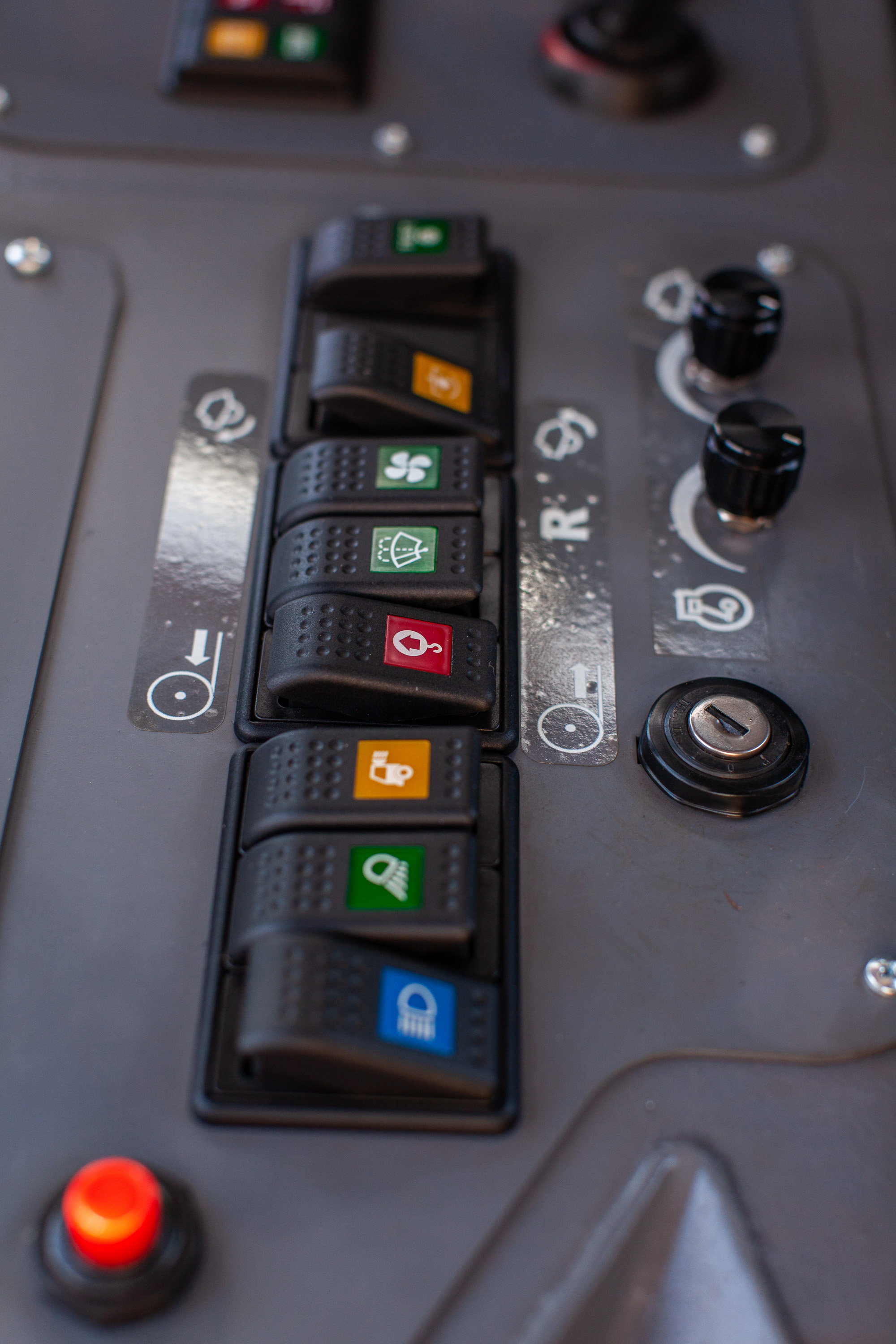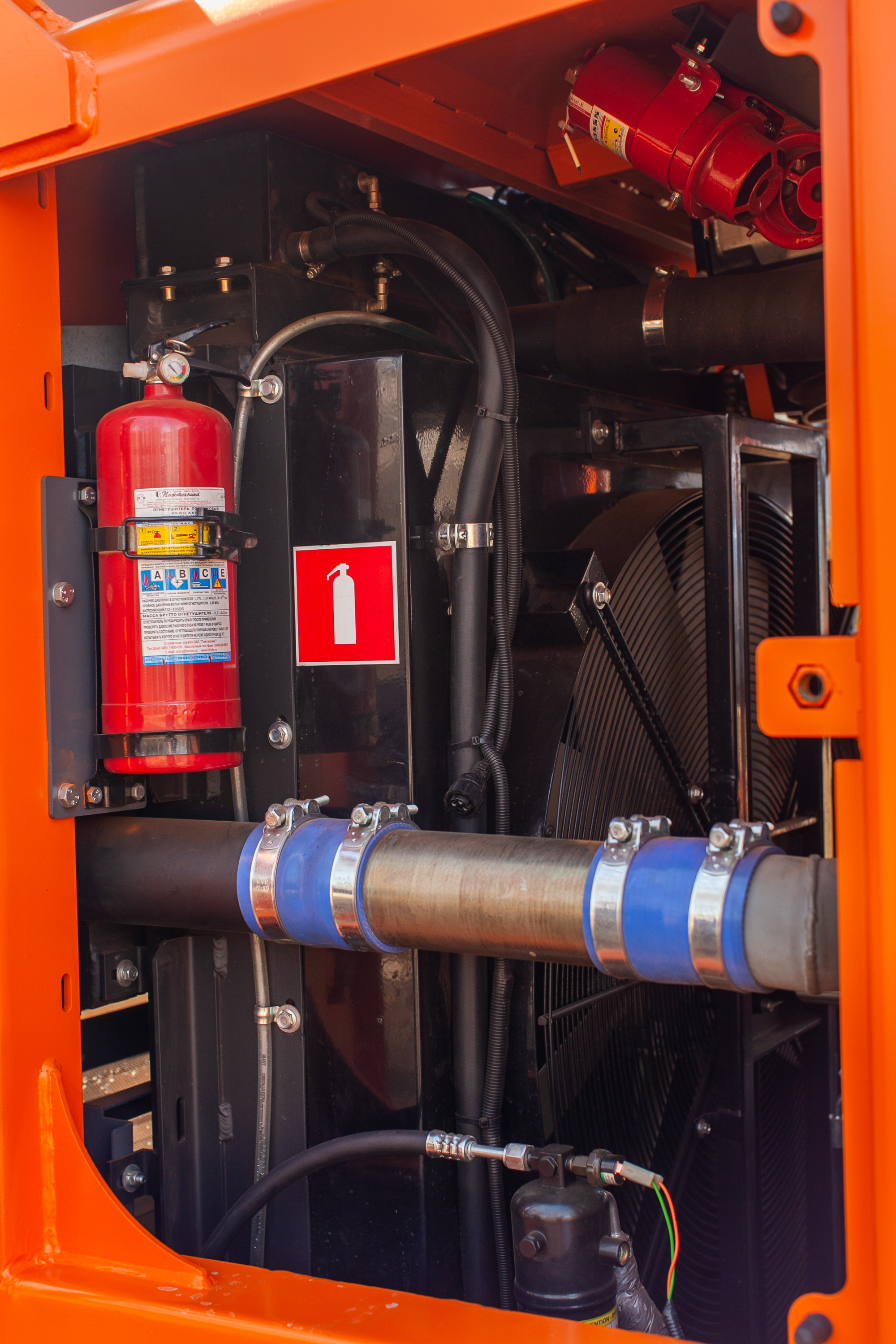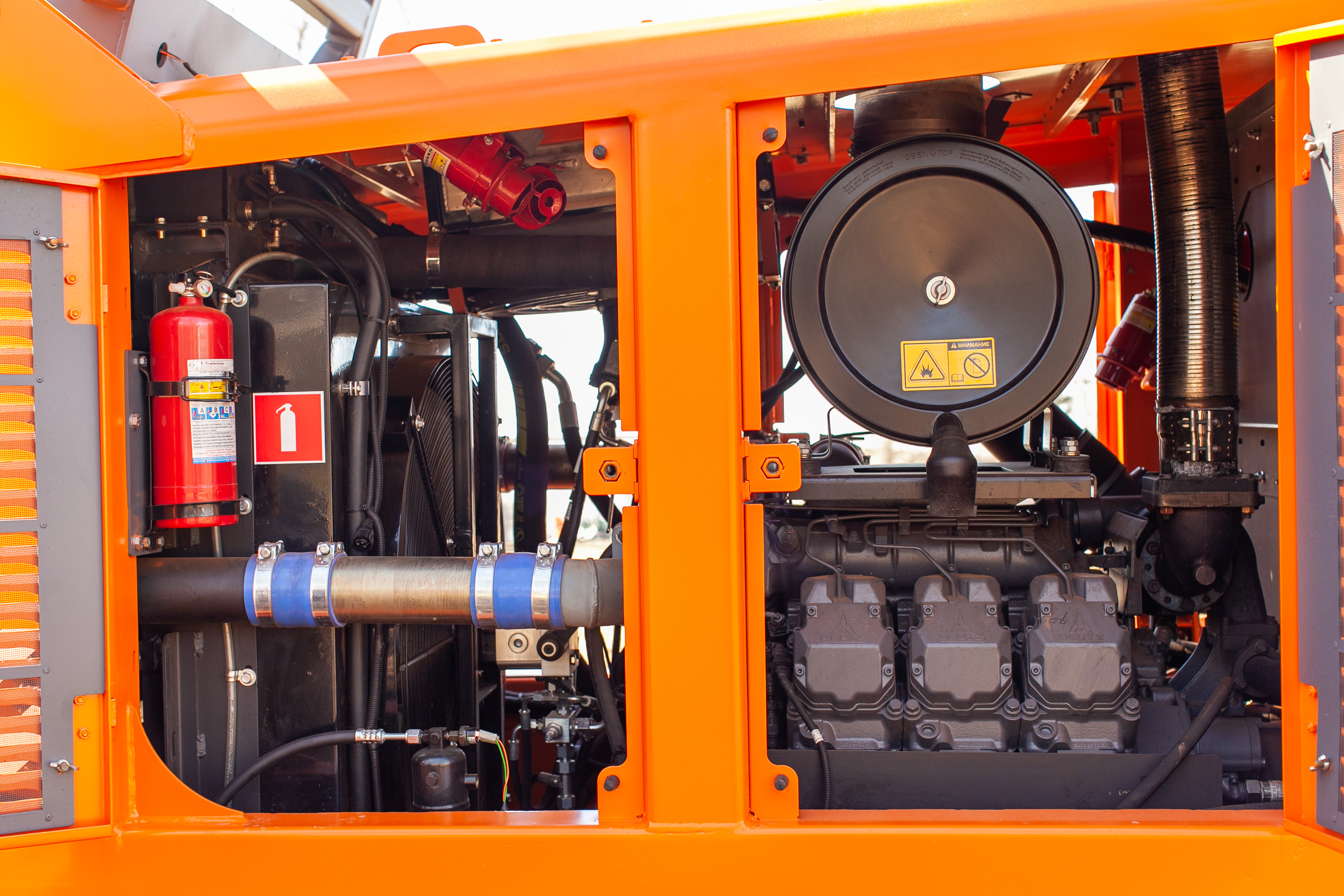 Оборудован высоконадежными гидромоторами хода и вращения ротора, электронной системой управления приводами от джойстиков, ЖК-монитором и камерой заднего вида. Кабиной c дополнительным откидным местом для пассажира, системой гусеничного хода с балансирной балкой; закрытой гидростатической трансмиссией хода, гидравлической системой привода ротора измельчителя, гидроприводом управления сервисными гидроцилиндрами (подъёма-опускания измельчителя, наклона толкающей рамы, открытия-закрытия крышки измельчителя, изменения угла наклона измельчителя, гидроприводом гидромотора маслоохладителя, приводом лебёдки), системой крепления рабочего оборудования, капотов, элементов защиты от падающих деревьев и комплектом светодиодных фар для эффективного освещения рабочей зоны.